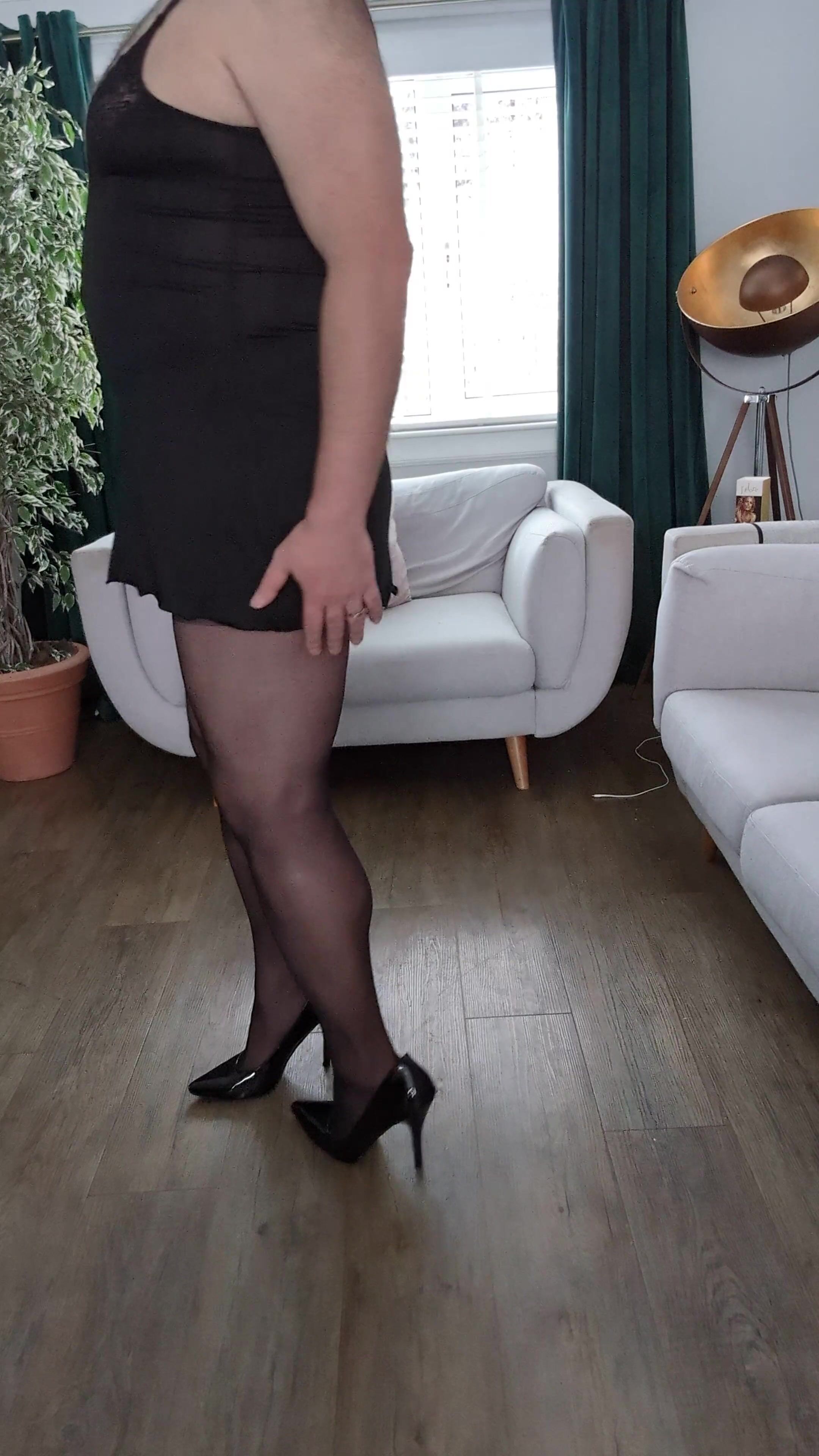 . My wife bought herself a new night dress and I couldn't wait to try it on. Also, someone asked for tights and panties. I hope you like?