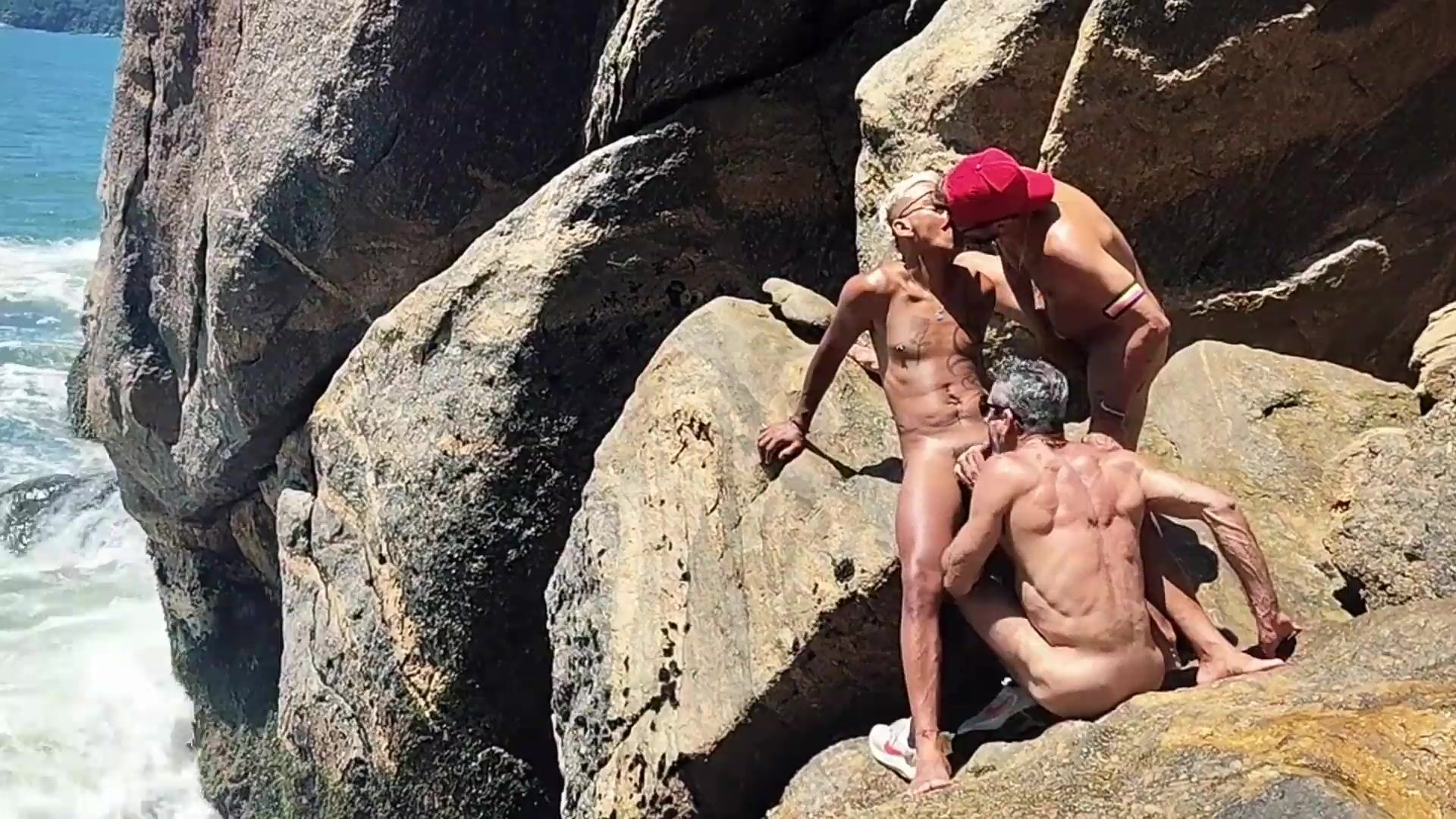 NAUGHTY FISHERMAN CAUGHT GIVING HIS ASS BEHIND THE ROCKS. - FULL ON RED