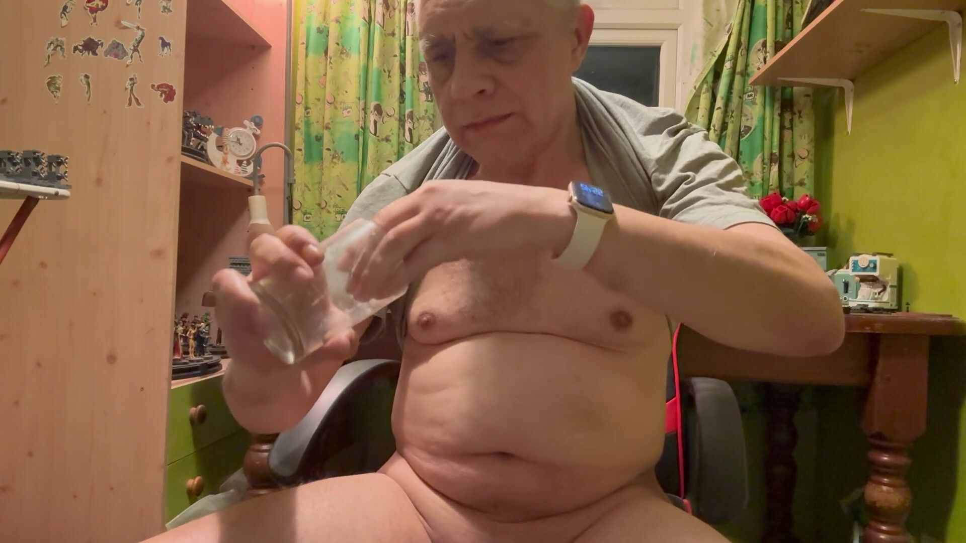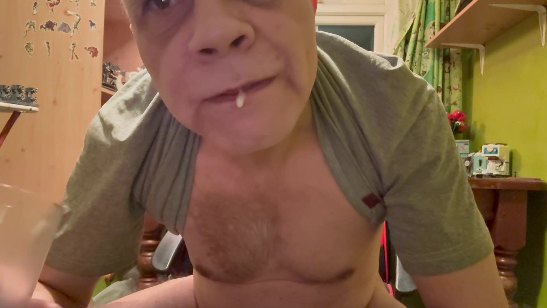 . Following from pt2. More arse fucking with dildo and slapping cock around. Then masturbating hard to get my balls to release the cum. I then cum but into a glass and then drink my cum trying to get every little bit. Yummy.