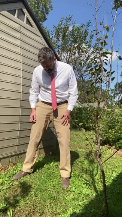 REX MATHEWS HUMILIATED PISSING HIMSELF IN SHIRT AND TIE JERKING OFF AND CUM IN PANTS