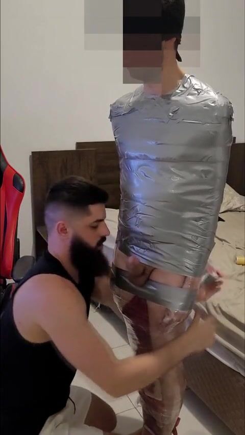 VERY LEWD MAN BEING MUMMIFIED BY BEARDED DOM