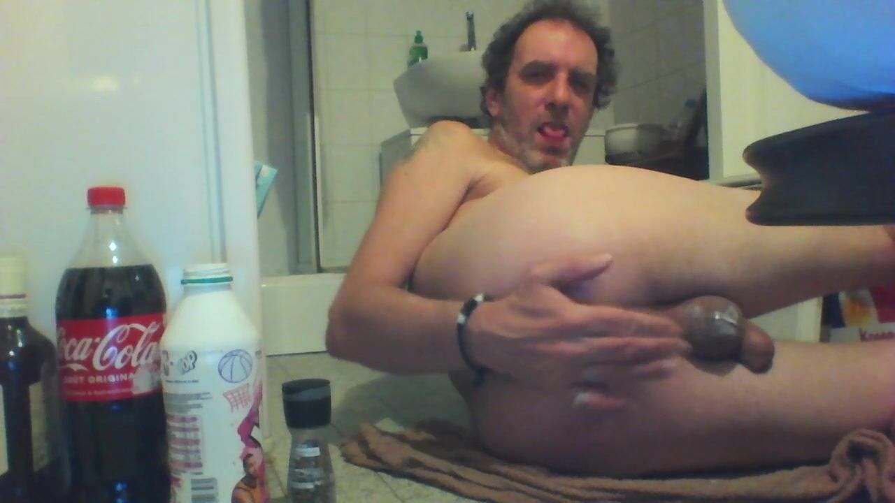 . insertion of pepper dispenser and deo stick in my ass and playing with bottle of yogurt